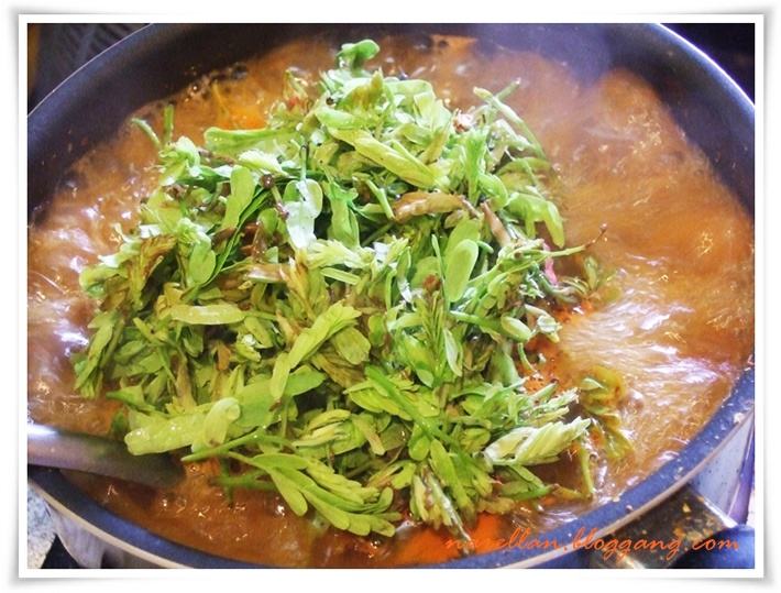 - จะหอมมะกรูดมาก ไม่เปรี้ยวเติมน้ำมะกรูดอีกได้ ไม่เค็มเติมน้ำปลาดี ไม่หวานก็เติมน้ำตาลปี๊บ พอรสได้ที่ก็ใส่ใบมะขามอ่อน รีบปิดฝายกลงทันที